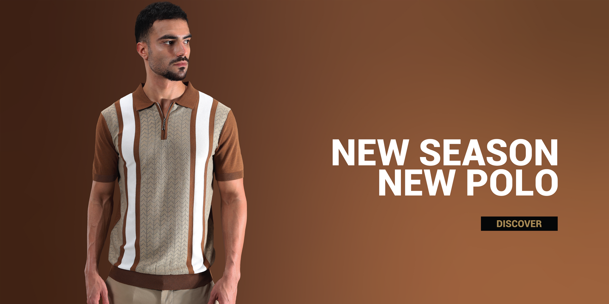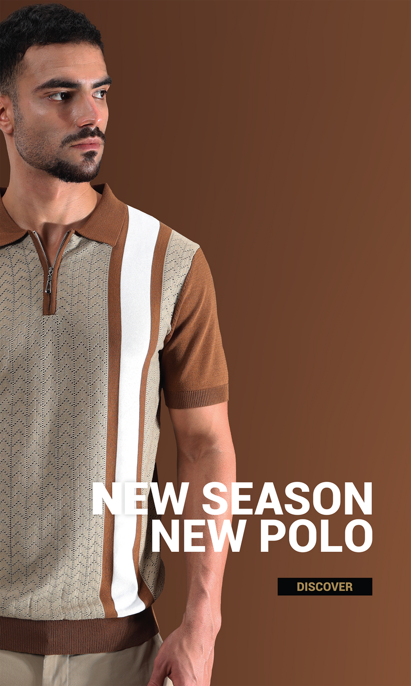 Chevron Stripe Flat-Knit Zip Polo - Brown