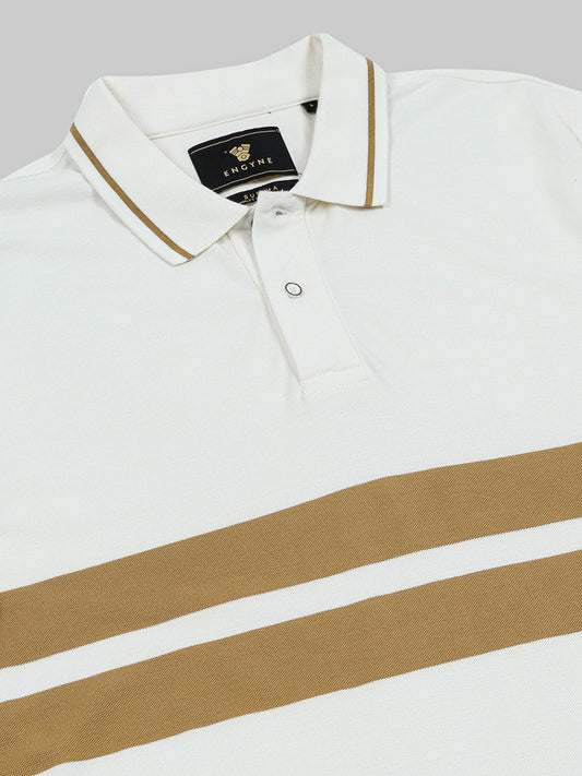 Supima Cotton Lycra Striped with Contrast-Tipped Collar and Cuffs White T-shirt