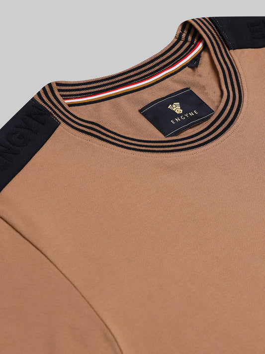 Rougen Cotton Lycra with Woven Shoulder Tape and Contrast Neck Rib Khaki T-shirt