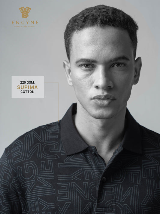 Supima Cotton Lycra with All-Over Print and DTM Collar Black Polo
