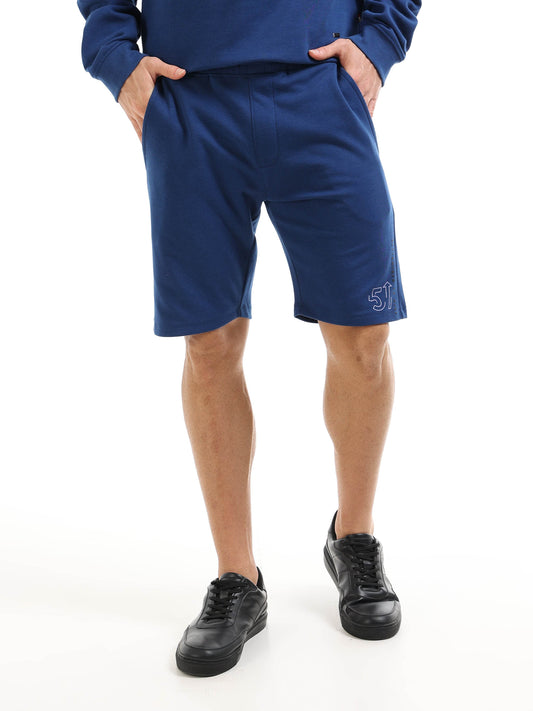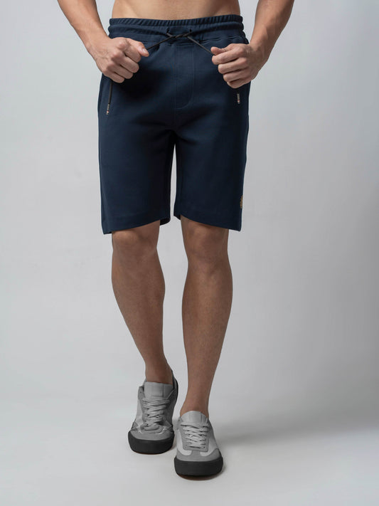 Regular Fit Shorts in Rougen Plated Cotton Poly Lycra Interlock with The Power of 5 Senses HD and Non-PVC Print - Dark Blue