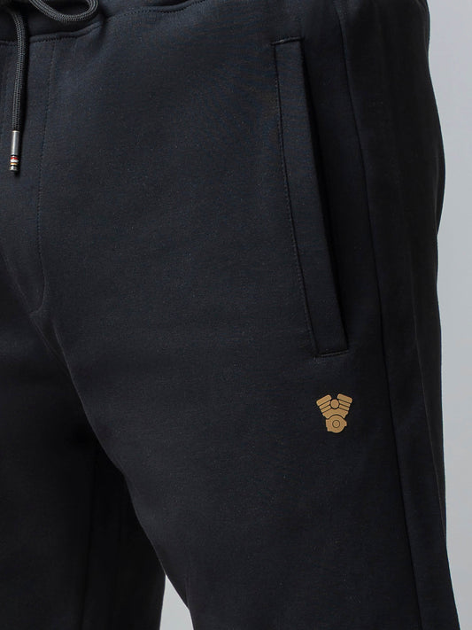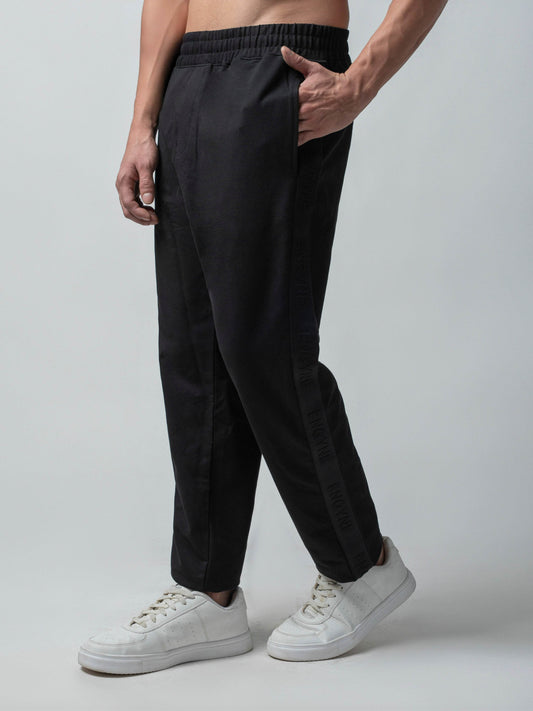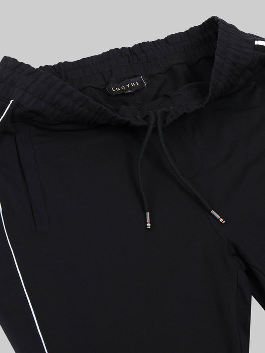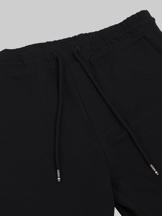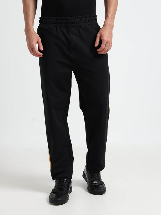 Rougen Cotton Elastane Loop Knit Trackpant with DTM Woven Side Tape Black