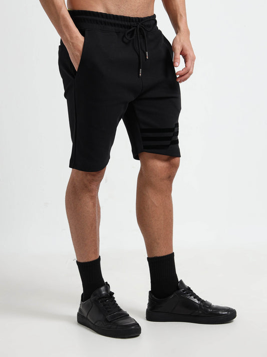 Engyne Flock Stripe Shorts – Flag Waving Detail Black