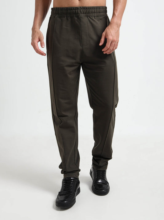 Rougen Cotton Elastane Loop Knit Trackpant with Center Pin Tuck element