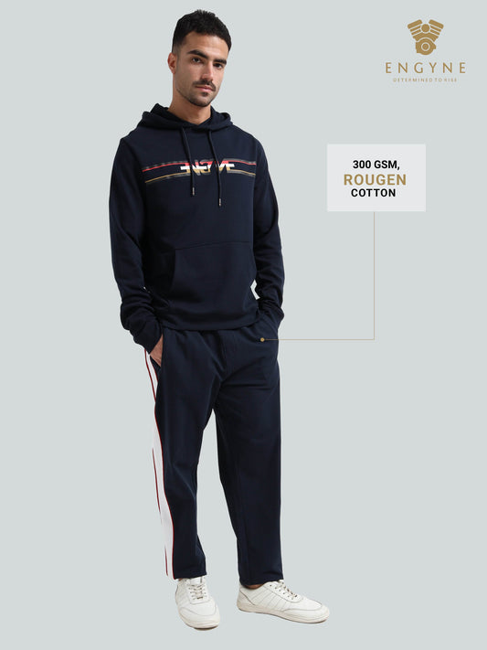Engyne Essential Trackpant with Contrast HD Print in Rougen Cotton Poly Elastane Interlock Navy