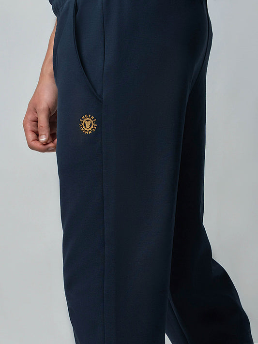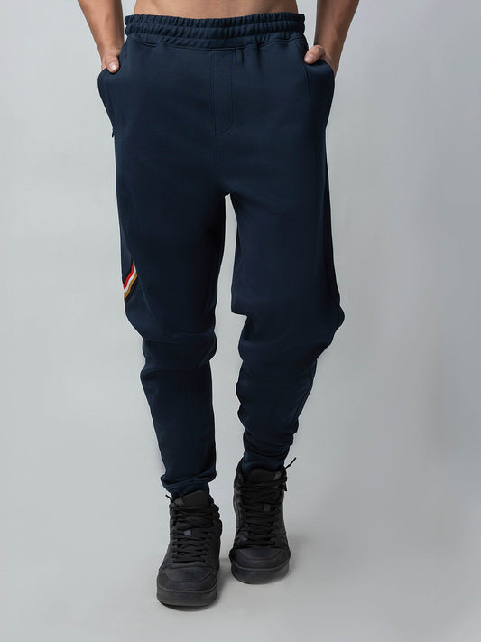 Rougen Cotton Poly Elastane Interlock Jogger with Cut-and-Sew Design and 4-Color Flag Tape Navy