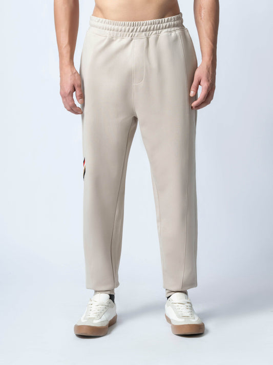 Rougen Cotton Poly Elastane Interlock Jogger with Cut-and-Sew Design and 4-Color Flag Tape Sand