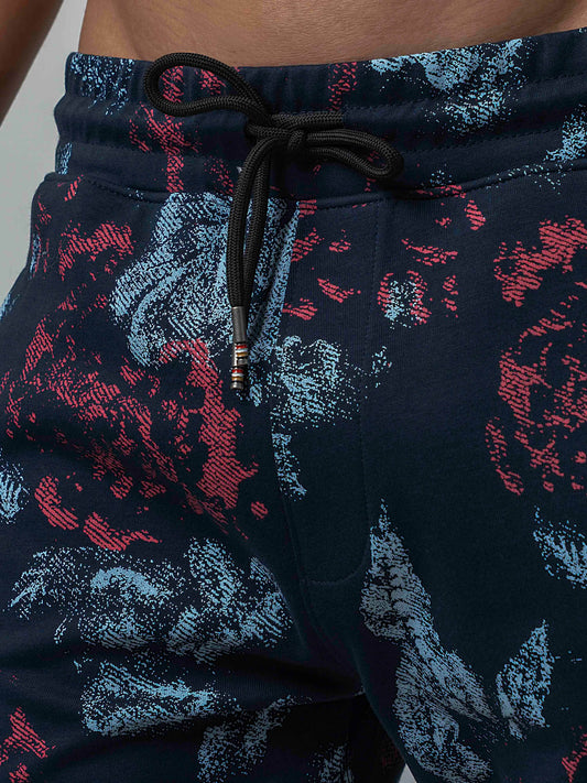 Rougen Cotton Poly Elastane Interlock Shorts with All-Over Print Navy