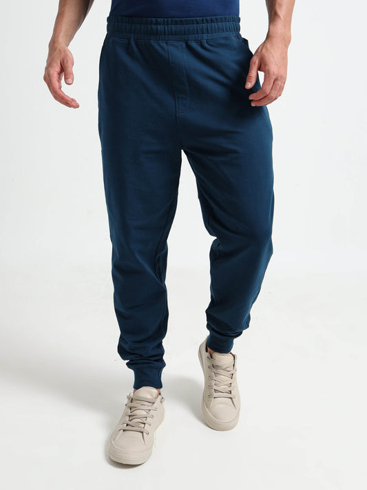 Regular-Fit Rougen Cotton Elastane Loop Knit Jogger with Back Cut-and-Sew Teal
