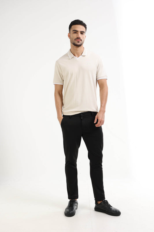 Off White Solid Precision Fit Supima Cotton Collared V-neck T-shirt