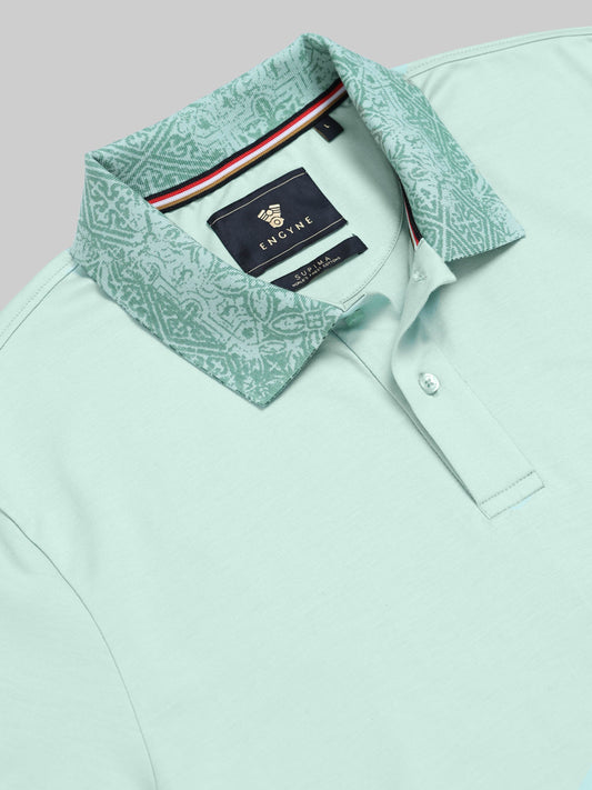 Regular Fit Supima Cotton LuxeKnit with Pigment Printed Slim Collar and Cuff - Light Green