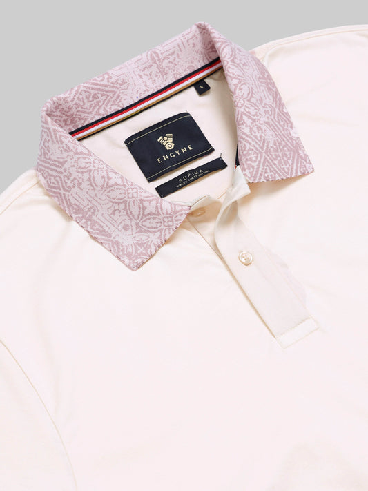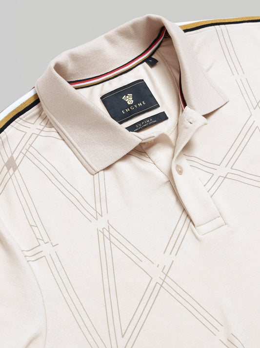 Supima Cotton Lycra Interlock with Pigment Printed Panels, Cut and Sew Detailing, and Speedbreaker Collar and Cuff Beige Polo