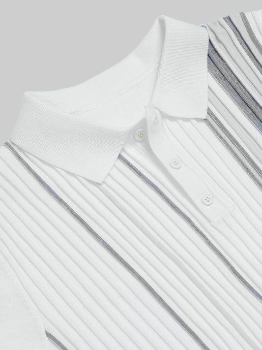 Chevron Stripe Flat-Knit Zip Polo - Brown