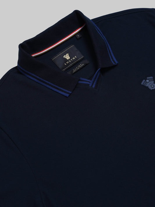 Supima Cotton Lycra Piqué with Flat-Knit Tipped Collar, V-Placket, and 3D Chest Branding Navy Polo
