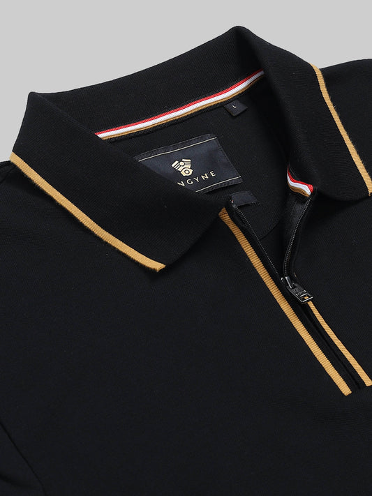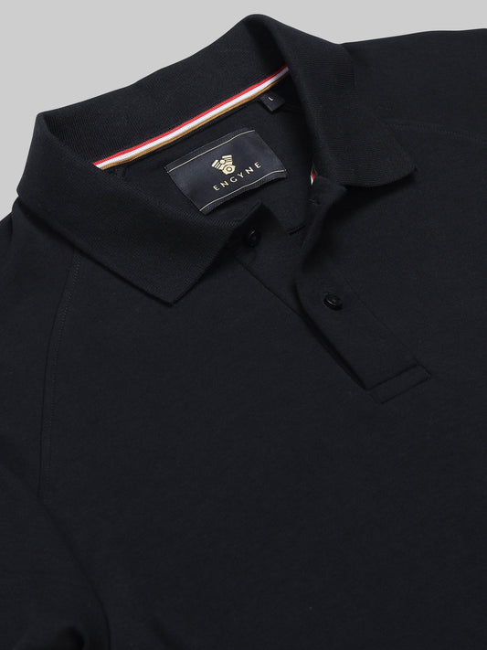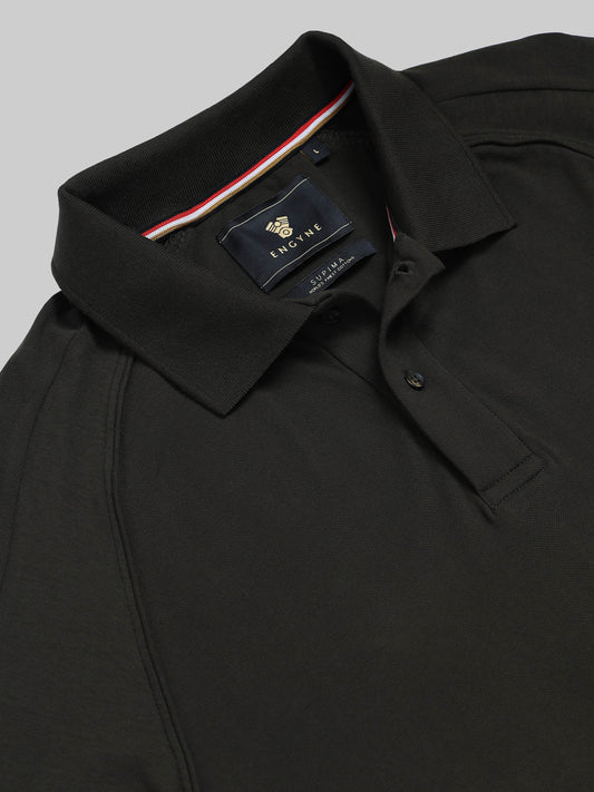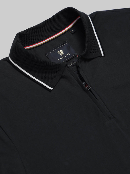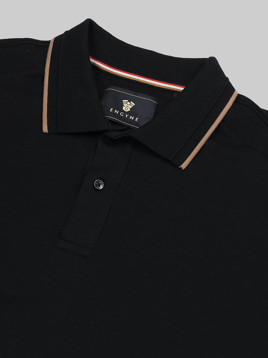 Engyne Supima Cotton Lycra Polo – Tonal Shoulder with Speed Breaker Collar Black