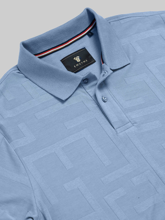 Regular Fit Engyne Monogram Rougen cotton jacquard polo - Dusty Blue