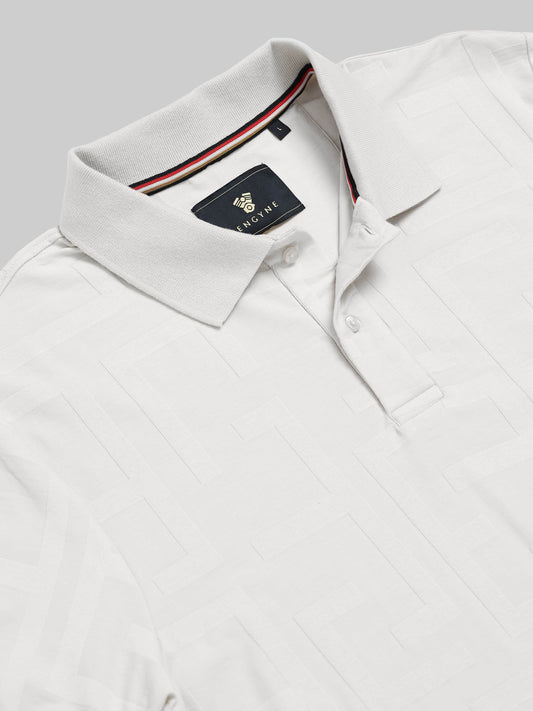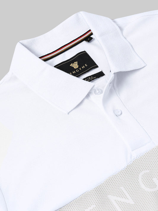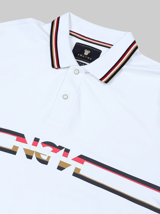 Engyne Supima Cotton Lycra Pique Polo – Signature Flag Tipped with Sticker Print White