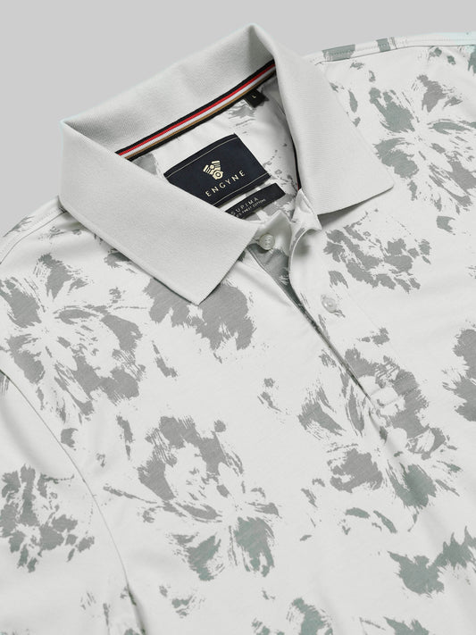 Regular Fit Supima Cotton LuxeKnit Polo with All Over Floral Rotary Pigment Print and Slim Flat Knit Collar and Cuff - Light Green