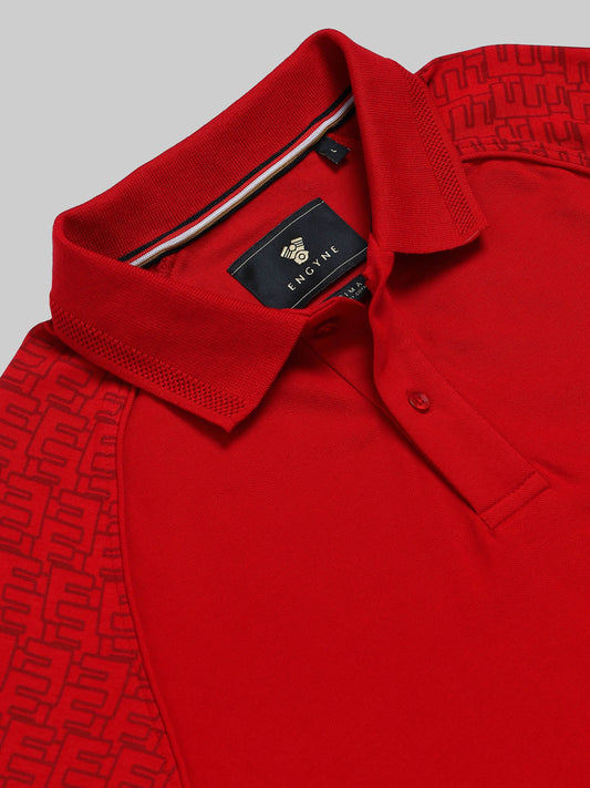 Regular Fit Polo with Printed Raglan Sleeves in Supima Cotton Lycra Interlock and Piqué Body Featuring DTM Corded Piping -Red