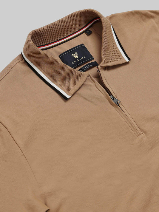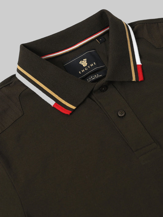 Engyne Supima Cotton Lycra Polo – Contrast Shoulder with Speed Breaker Collar Brown