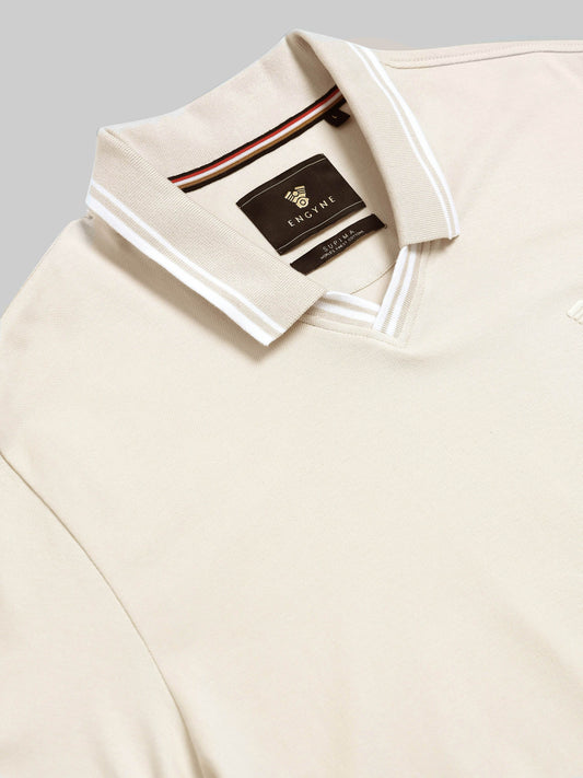 Supima Cotton Lycra Piqué with Flat-Knit Tipped Collar, V-Placket, and 3D Chest Branding Beige Polo