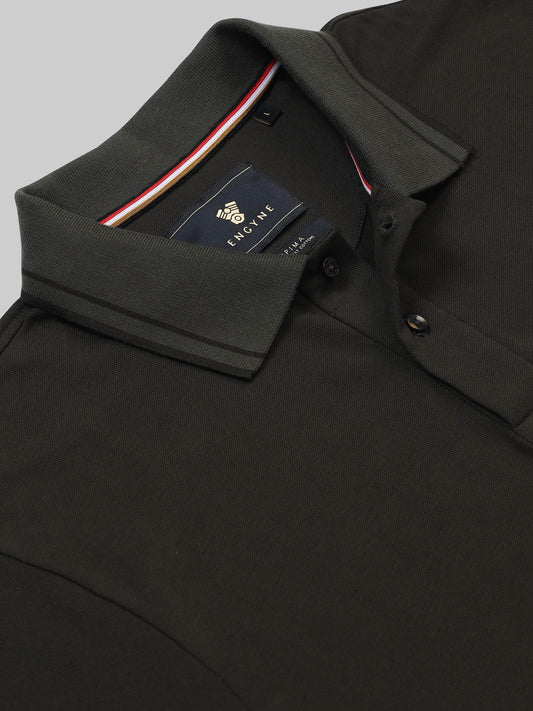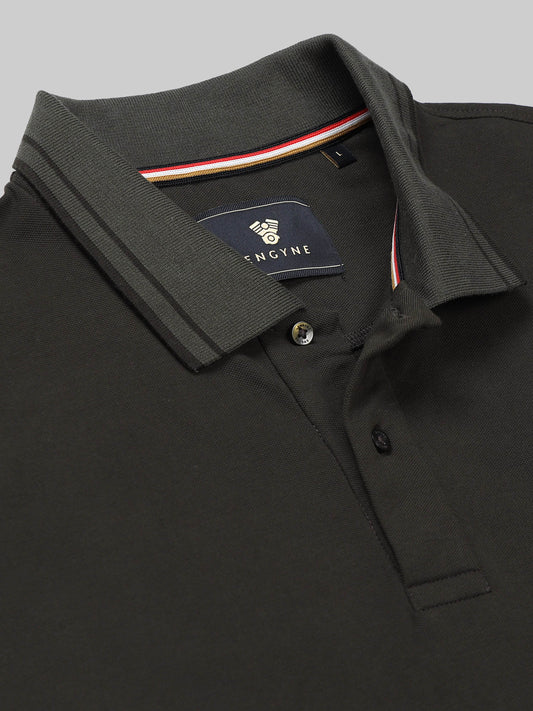 Engyne Rougen Piqué Polo – Tonal Collar Finish Olive