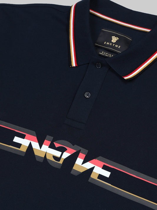 Engyne Supima Cotton Lycra Pique Polo – Signature Flag Tipped with Sticker Print Navy