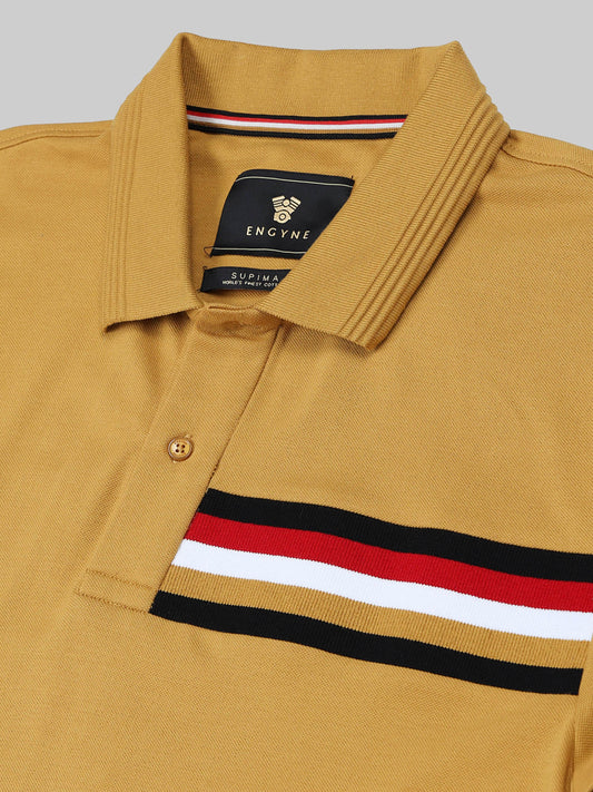 Engyne Signature Flag Cut & Sew Polo with Speed Breaker Detailing in Supima Cotton Lycra Pique Mustard Gold