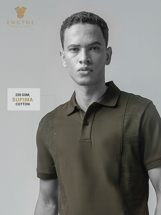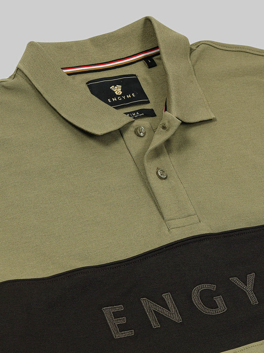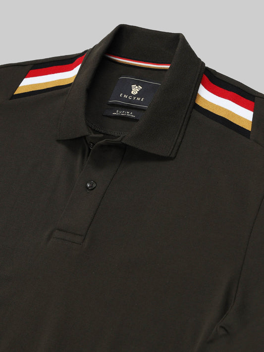 Engyne Supima Cotton Lycra Polo – Textured Collar & Shoulder Detail Olive