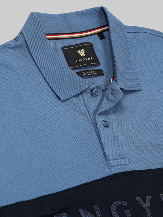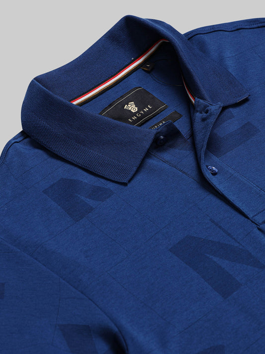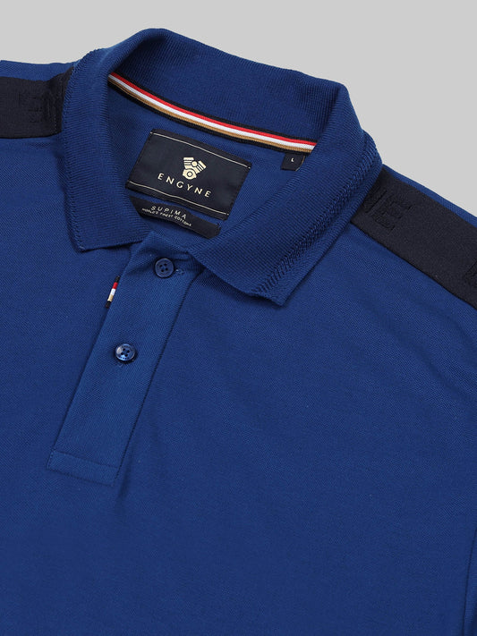 Engyne Supima Cotton Lycra Polo – Textured Collar & Shoulder Detail Dark Blue