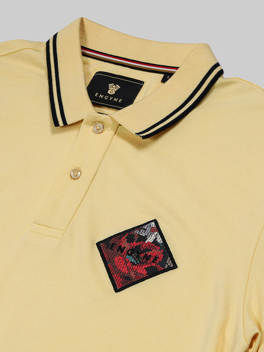 Supima Cotton Lycra with Sublimation-Printed Embroidered Badge Light Yellow Polo