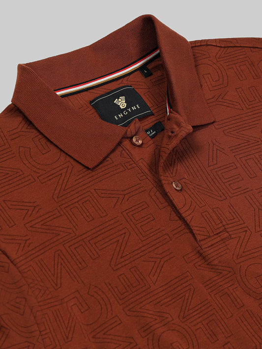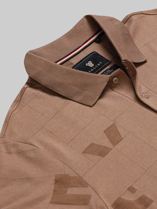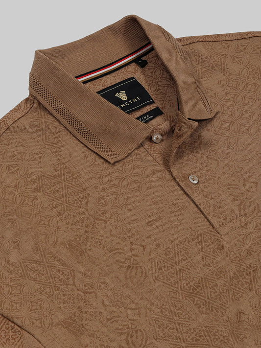 Supima Cotton Lycra with All-Over Print and DTM Collar Brown Polo