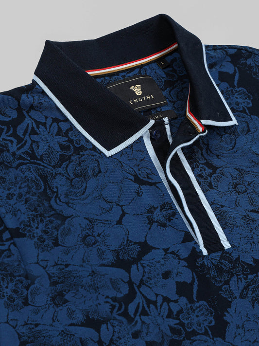 Supima Cotton Lycra with Engyne Special Tech Rotary Print and Contrast-Tipping Navy Polo