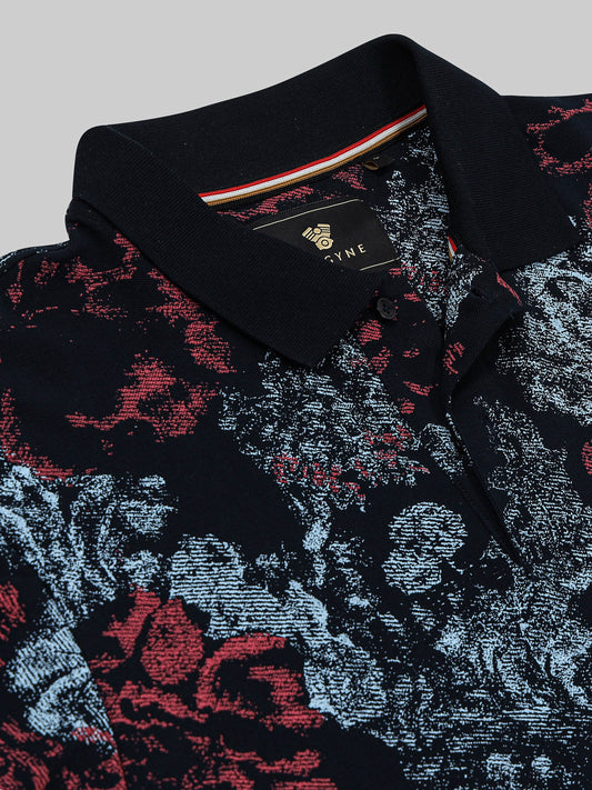 Supima Cotton Lycra with Rotary All-Over Print and DTM Collar Navy Polo