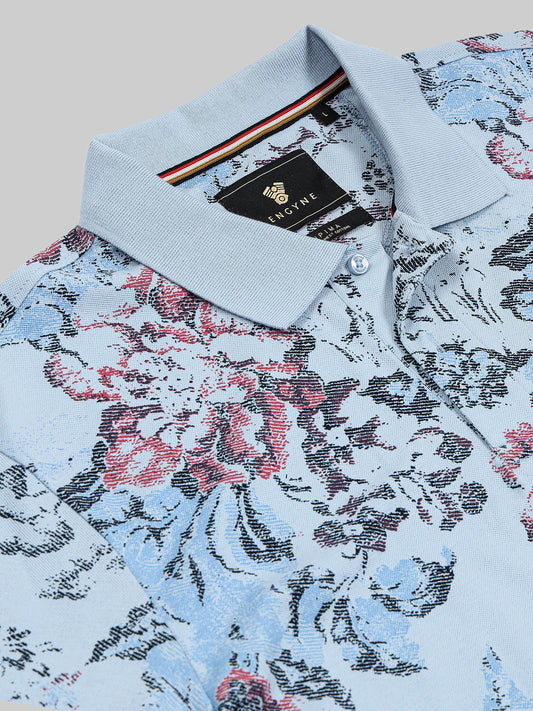 Supima Cotton Lycra with Rotary All-Over Print and DTM Collar Light Blue Polo