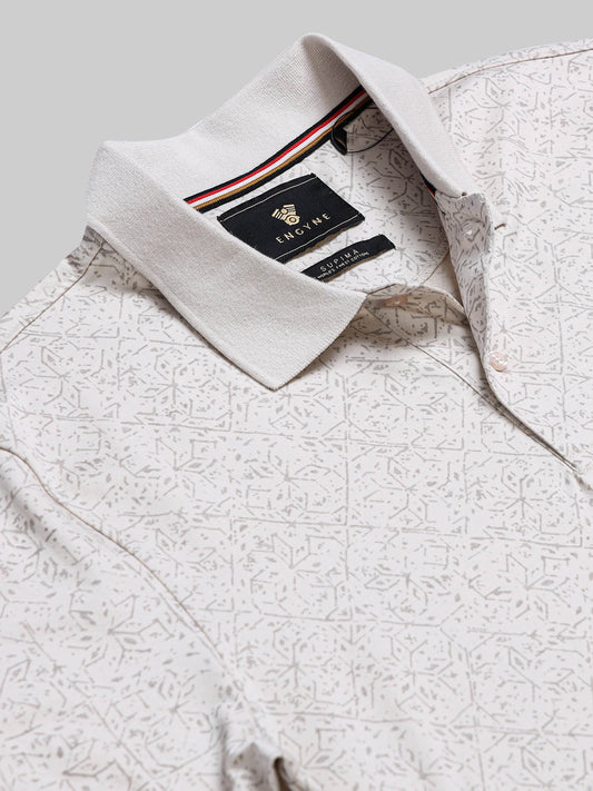Supima Cotton LuxeKnit with Rotary Pigment Print and Slim DTM Collar Beige Polo