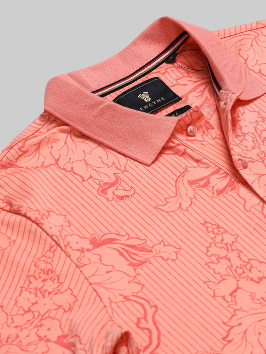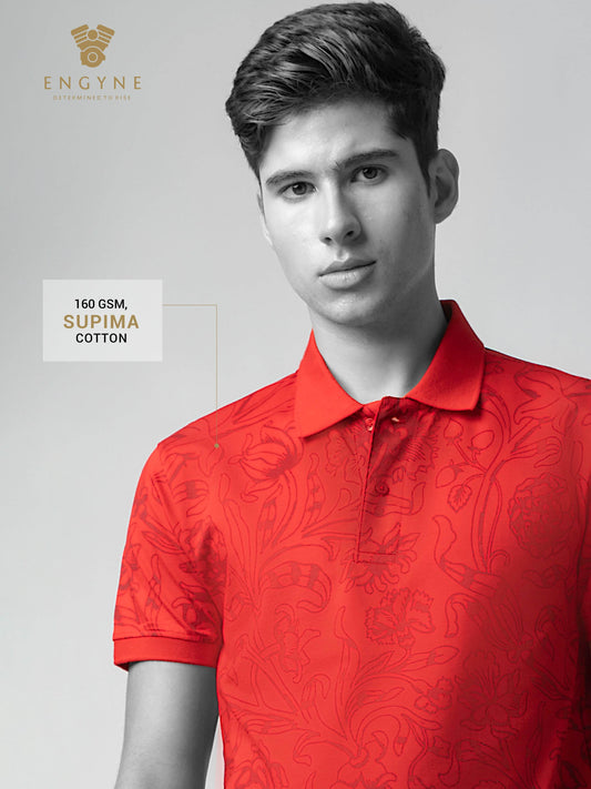 Supima Cotton Lycra with Engyne Special Tech Rotary Print and Contrast-Tipping Red Polo