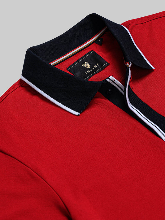 Rougen Cotton Lycra with Contrast Flat Knit Placket and Tipped Collar Red Polo