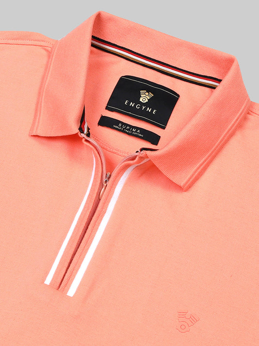 Engyne Rougen Piqué Polo – Speed Breaker Collar & Zipper Placket Light Orange