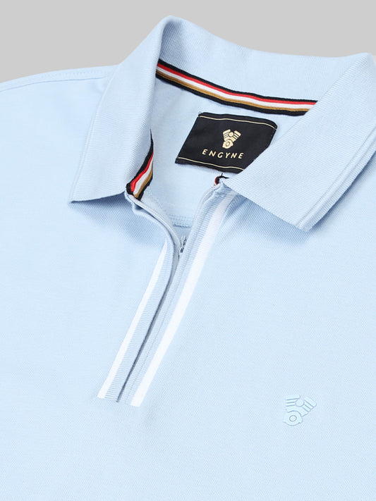 Engyne Rougen Piqué Polo – Speed Breaker Collar & Zipper Placket Light Blue