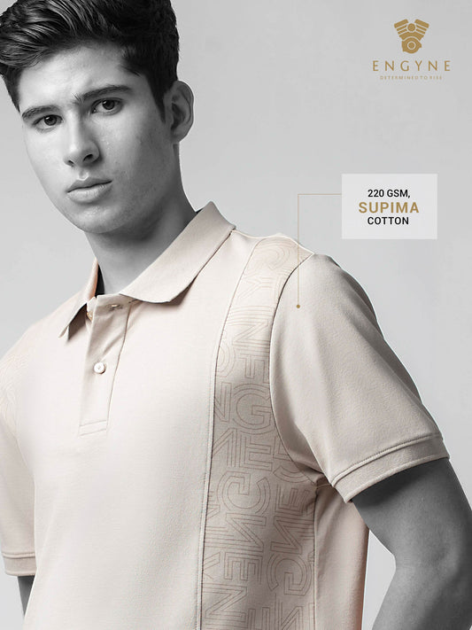 Supima Cotton Lycra with Pigment Panel Print and Cut-and-Sew Sand Polo