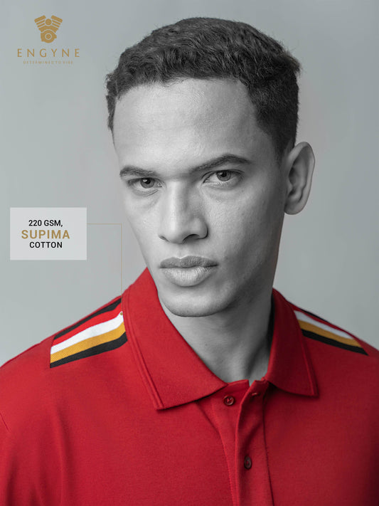 Supima Cotton Engyne Signature Four-Color Flag Rib Shoulder and Speed-Breaker Textured Collar Dark Red Polo