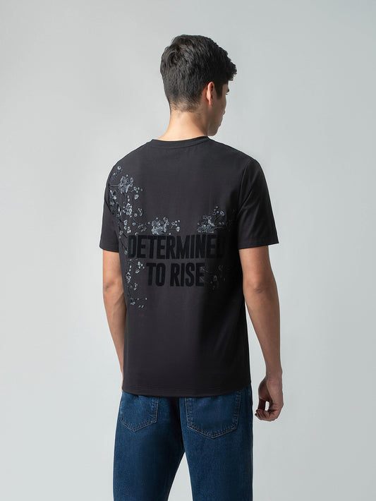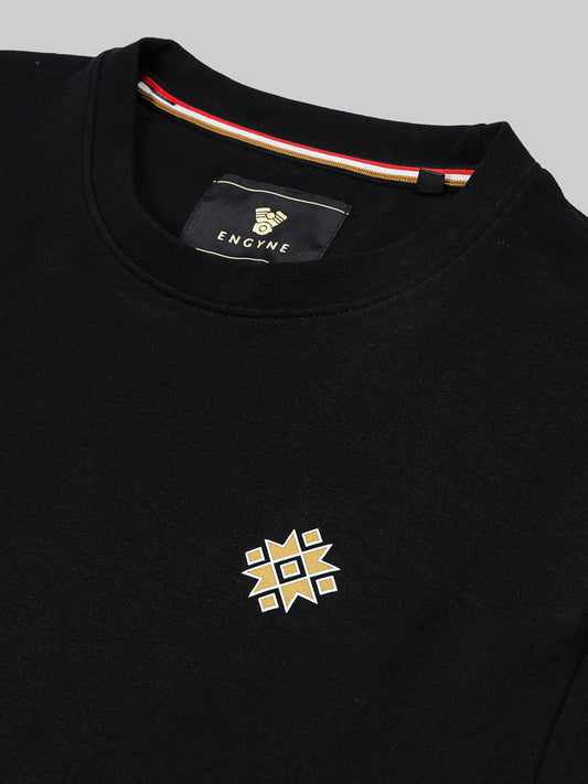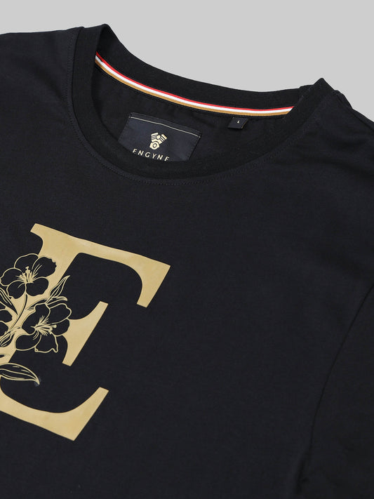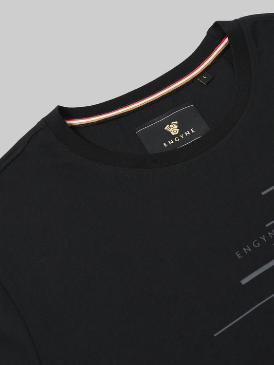 Regular -fit Engyne Rougen Cotton Lycra Tee with Silicon HD Sticker Print Black