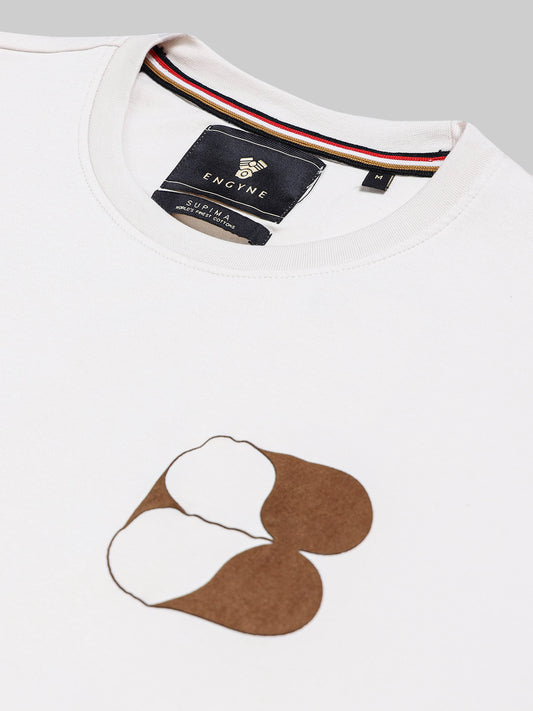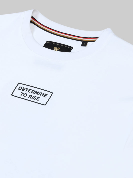 Rougen Cotton Lycra Tee with Silicon HD Sticker Print White T-shirt