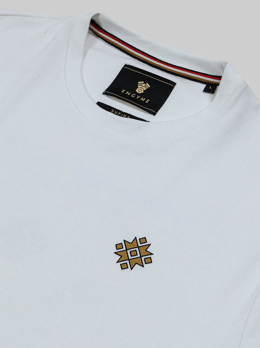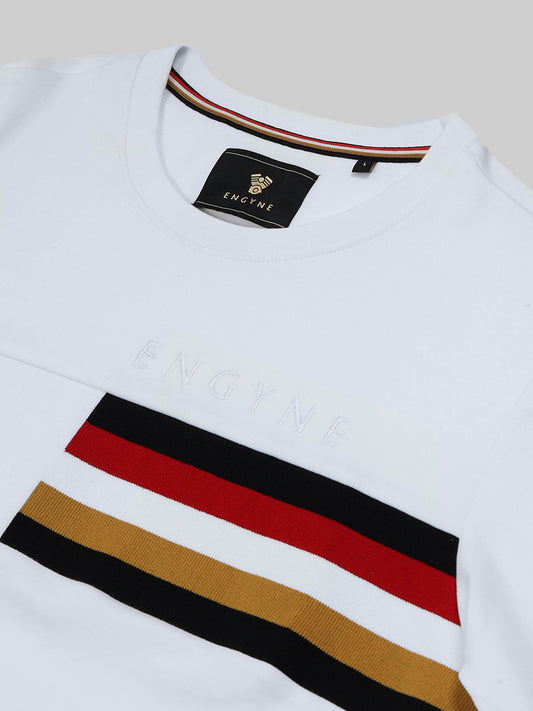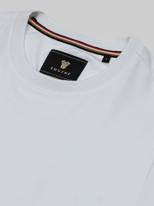 Supima Cotton Lycra Interlock with Engyne Signature Flat-Knit Rib Chest Panel and Embroidered Branding White T-shirt