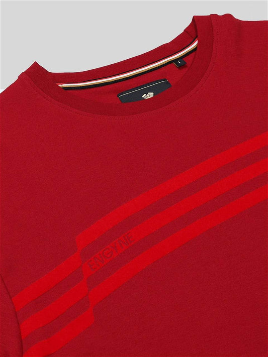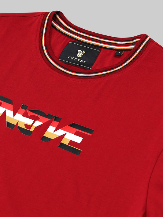 Supima Cotton Lycra with Non-PVC Engyne Stripe Sticker Print Dark Red T-shirt