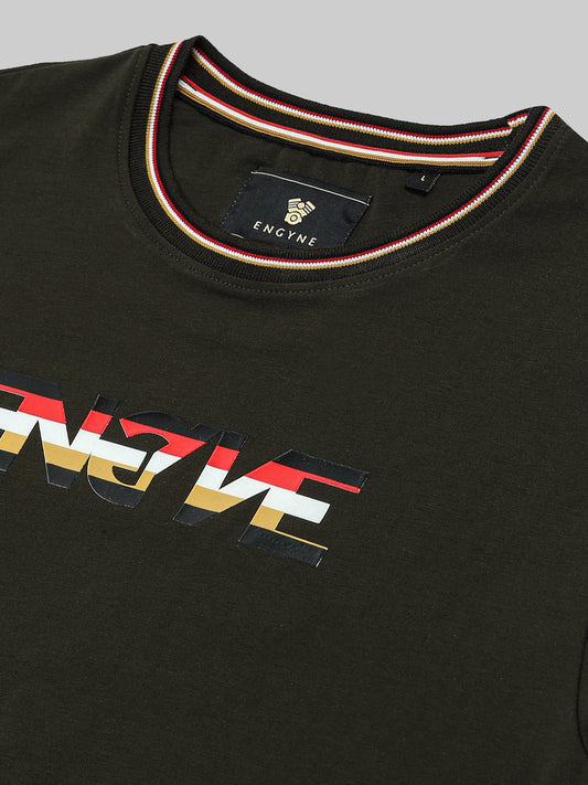 Supima Cotton Lycra with Non-PVC Engyne Stripe Sticker Print Olive T-shirt