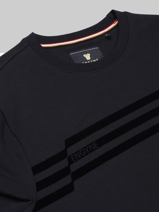 Regular-fit Engyne T-shirt in Supima Cotton Lycra with Digital Flock Print Black