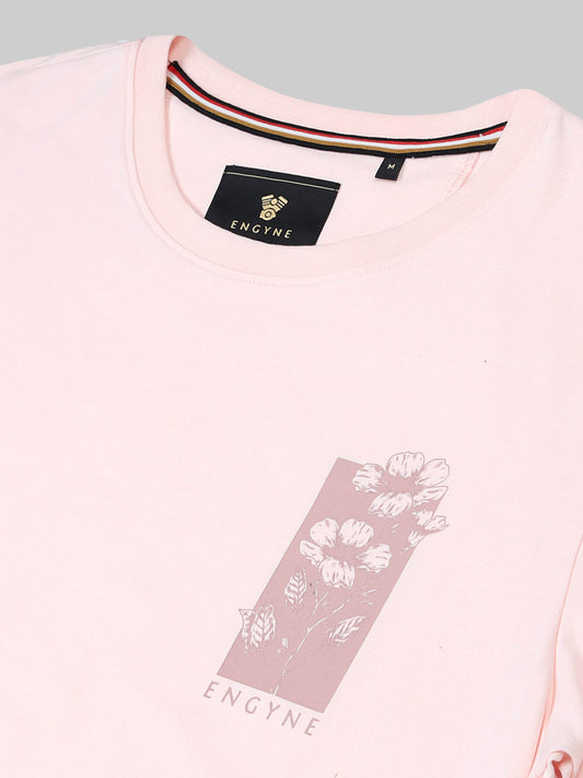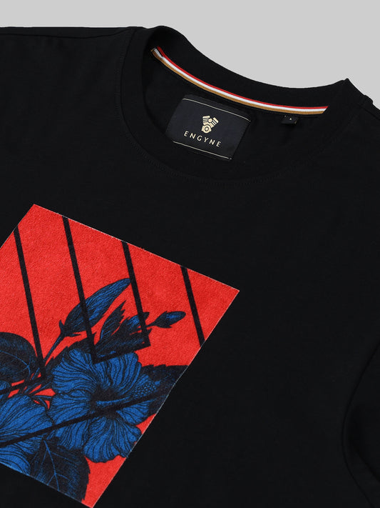 Regular -fit Engyne Rougen Cotton Lycra Tee with Pigment Floral Print