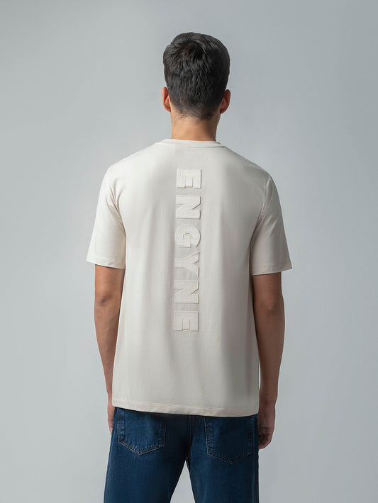 Jersène LuxeKnit with Engyne Appliqué Back and Front Iconic Emblem Beige Tee